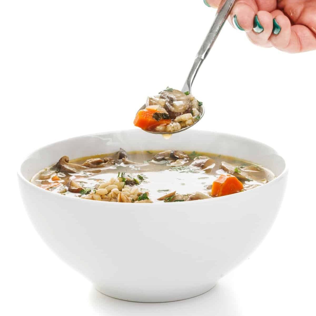 My Mushroom Barley Soup is great for dinner and using the leftovers for lunch the next day, or to meal prep at the start of the week. Even without the protein, it’s hearty and satisfying.