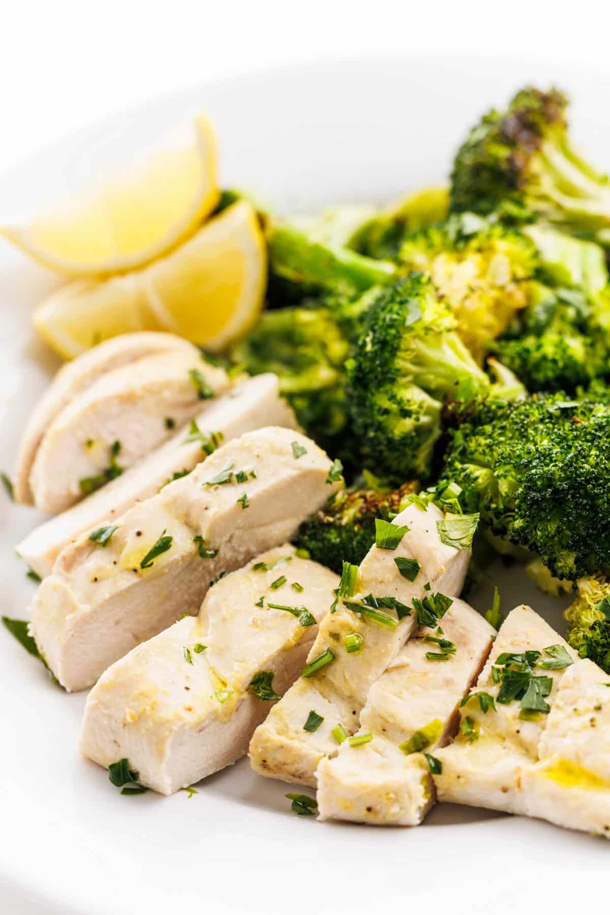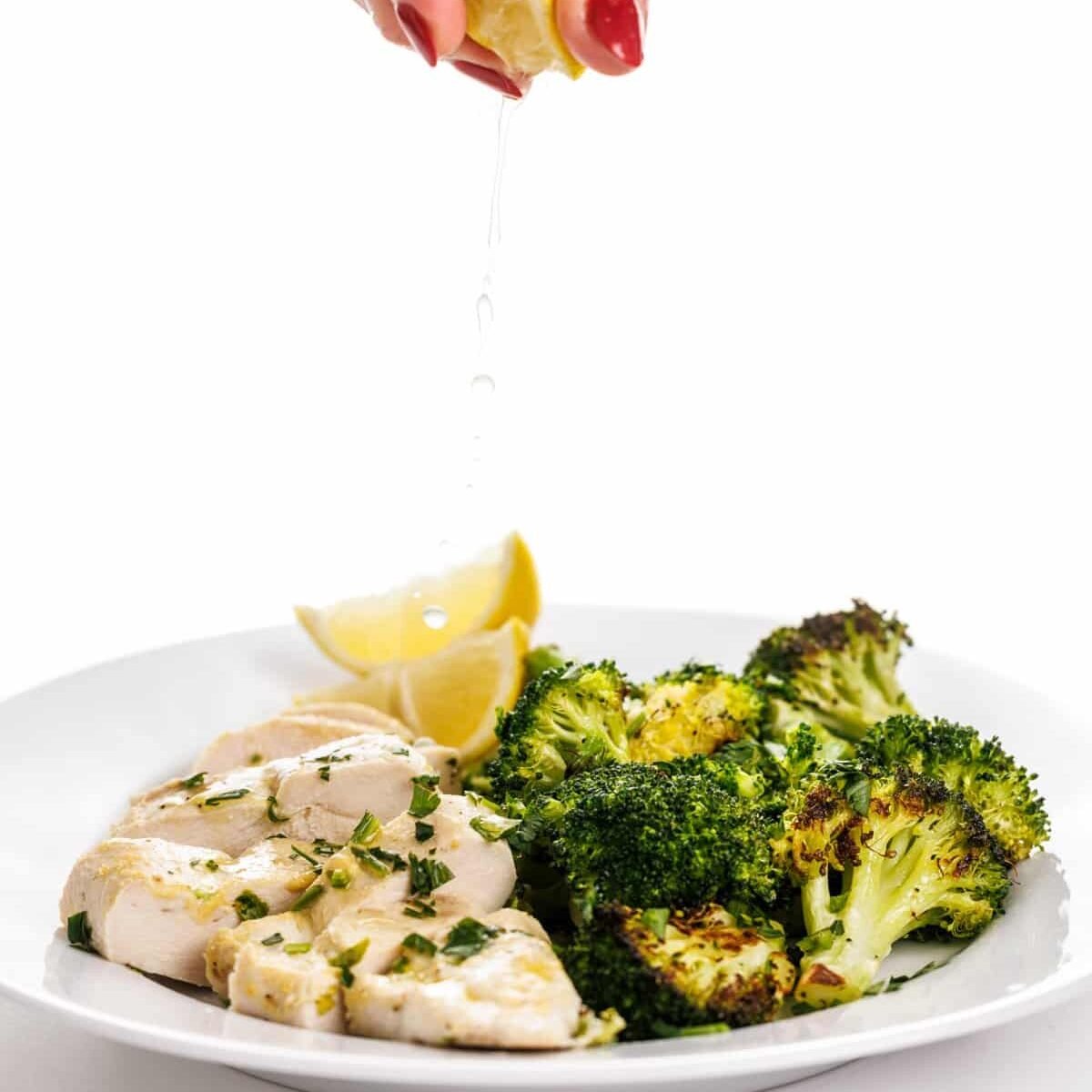 Drizzle with lemon juice and garnish with fresh basil or parsley, serve, and enjoy your One Pan Roasted Chicken and Broccoli!