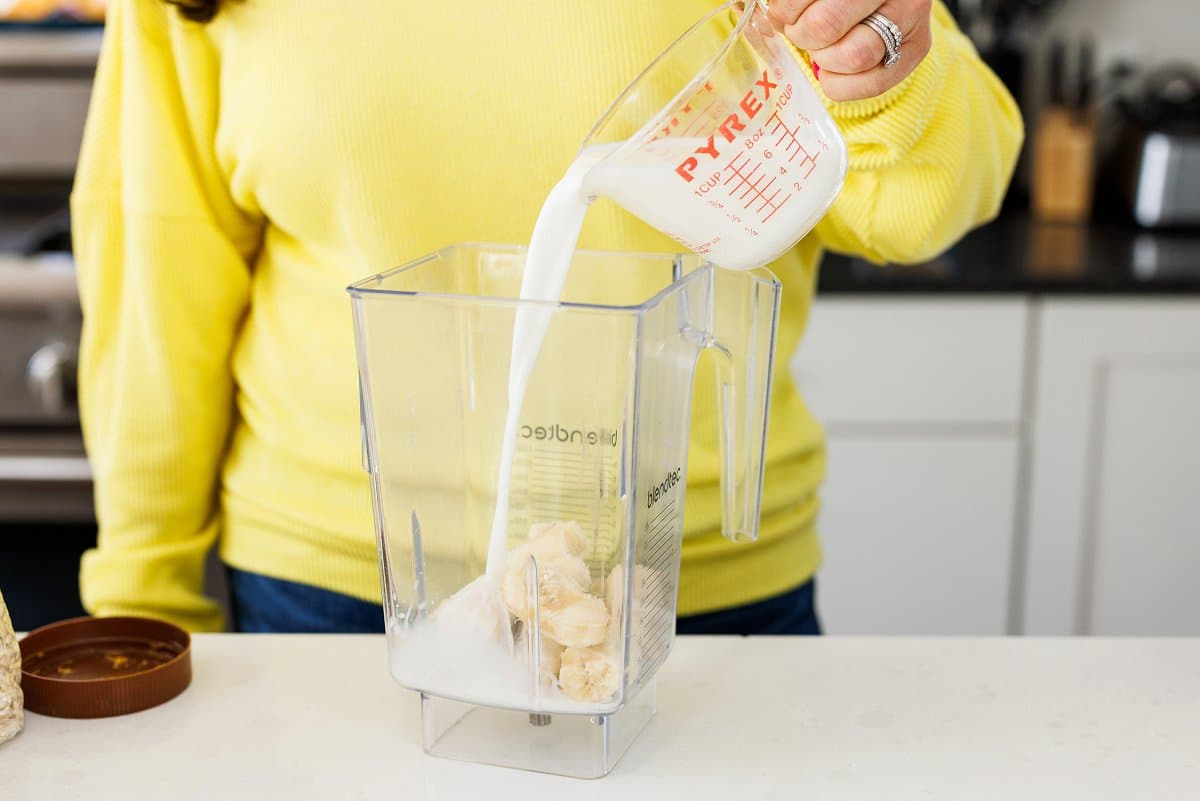 Step 1. Start by adding your banana to your blender.