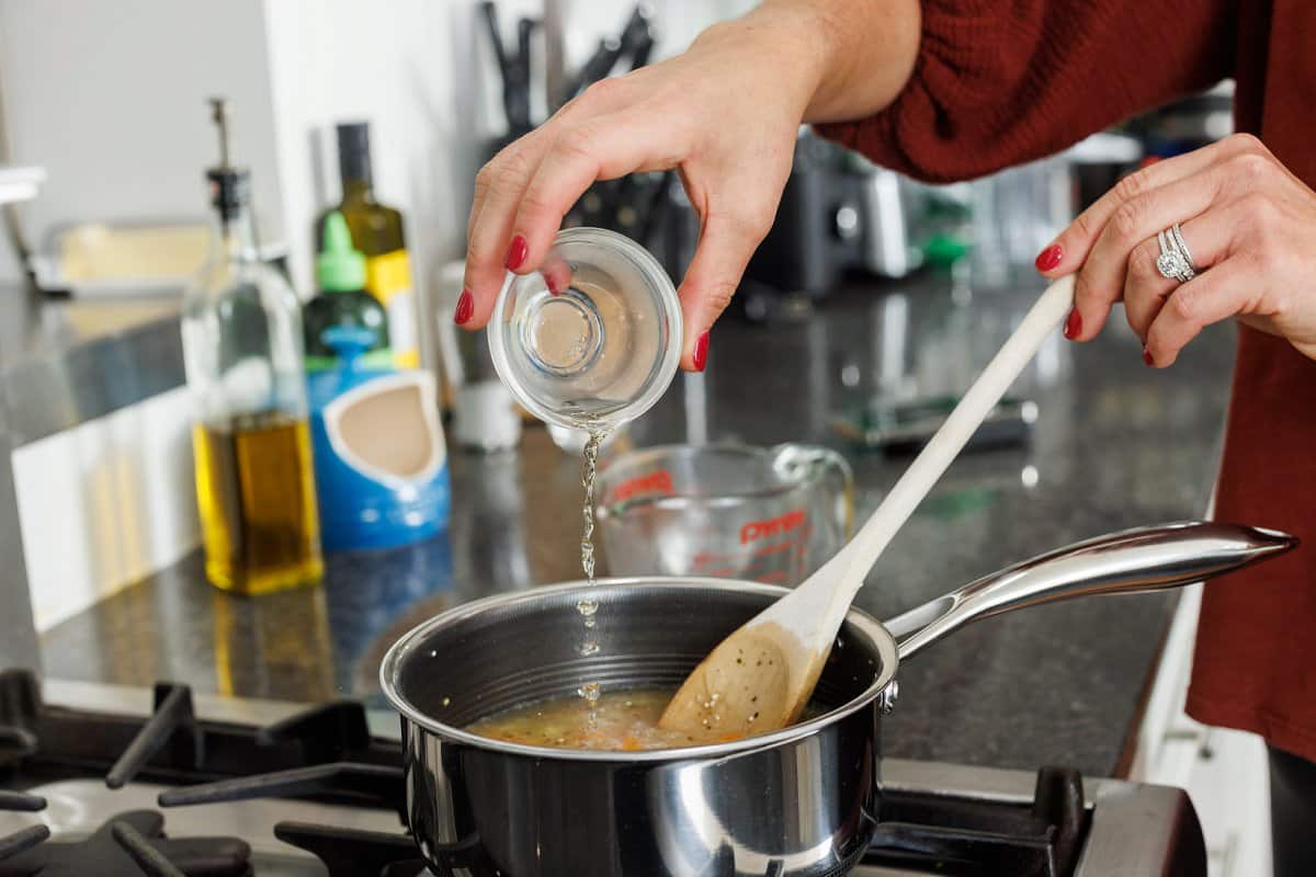Stir in the apple cider vinegar, then bring to a boil over high heat.
