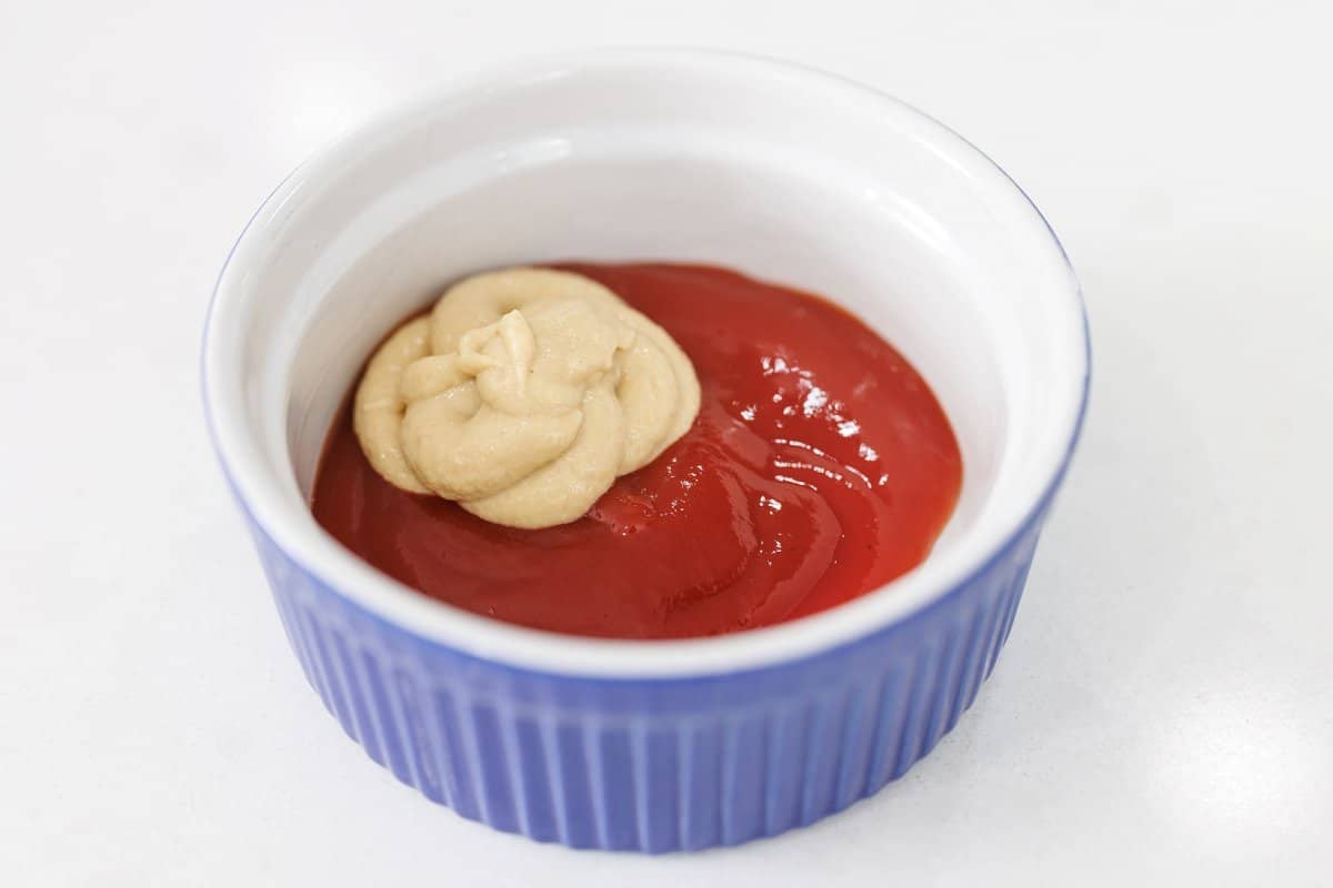 In a smaller bowl, mix your ketchup and Dijon mustard.
