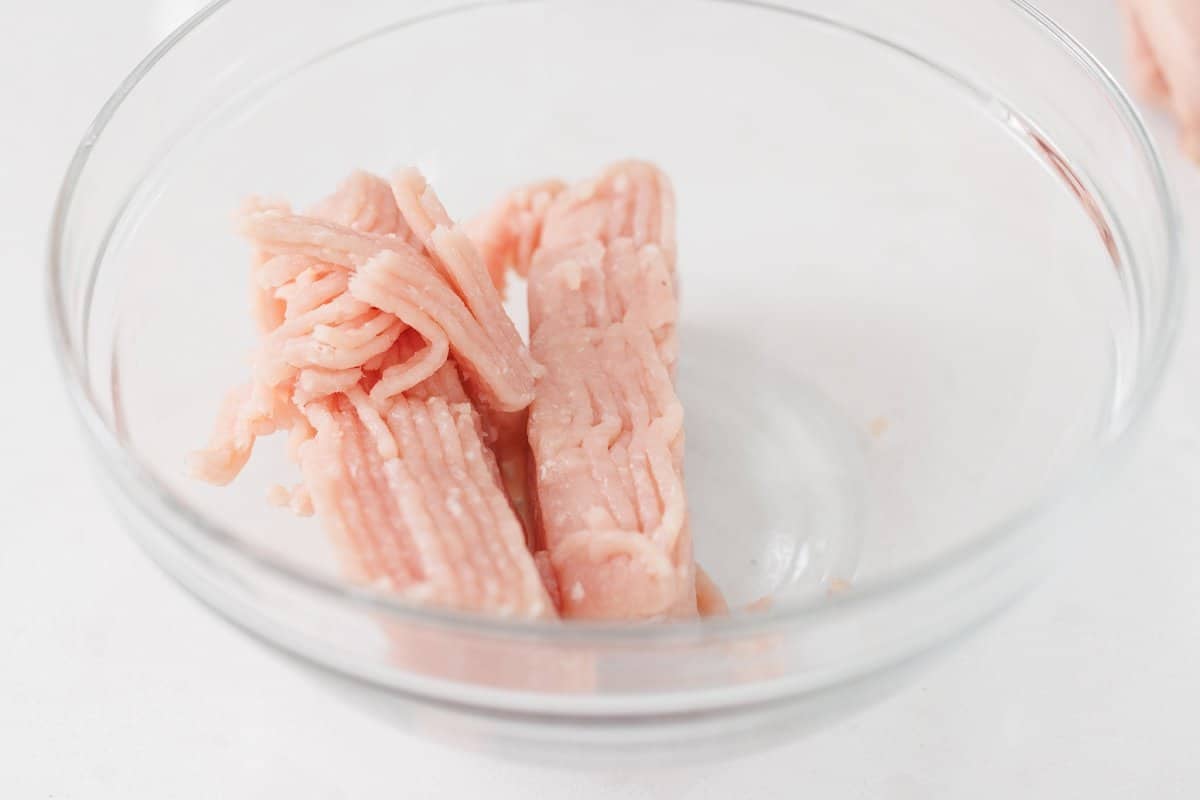 Next take a large bowl and add the ground turkey.