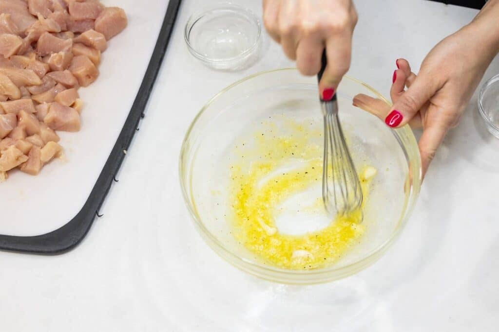 Step 3. Then whisk in the lemon juice, olive oil, salt, and pepper. Many recipes also use plain yogurt in the marinade, so feel free to try that as well!