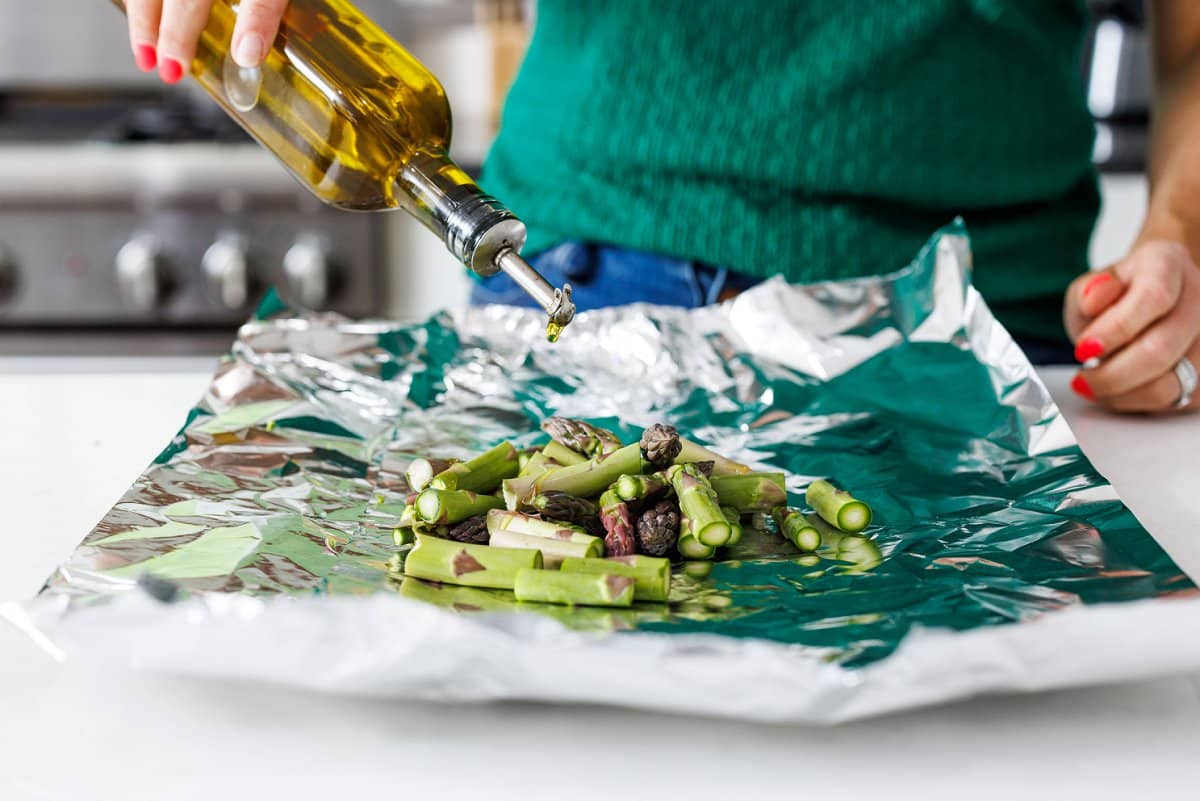 Then you’ll season the asparagus with some salt and black pepper, just to taste.