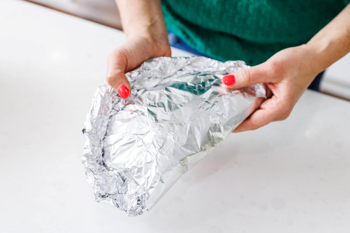 - To create the foil pouch, begin by folding the bottom up and over the top. Working from left to right, carefully fold over the foil until the pouch is fully enclosed and tight. Repeat with the three other pouches.