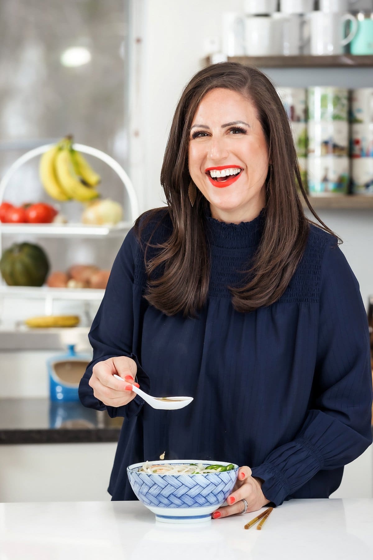 With chopsticks and a spoon! This video explains the correct way to eat pho and is super entertaining. Essentially, you eat combinations of ingredients with your chopsticks, and in between bites, scoop up the broth with your spoon sip. If you’re an expert, use both together! P.S. Slurping is encouraged!