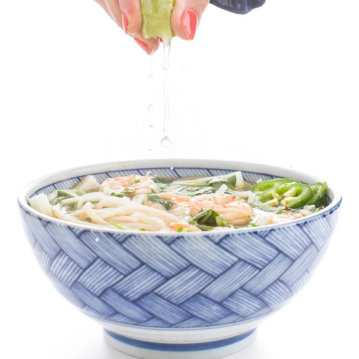 My Shrimp pho-inspired Vietnamese shrimp noodle soup is a faster, easier weeknight version that doesn’t require hours in the kitchen making the traditional bone-marrow broth. This aromatic shrimp noodle soup is warm, satisfying, and full of flavor thanks to all of the herbs and spices.