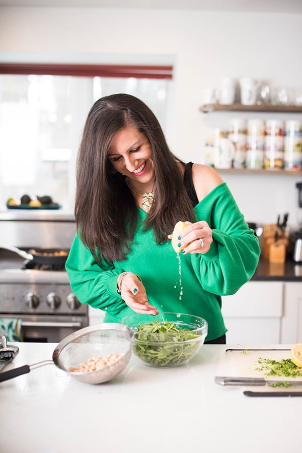 To add a crunchy texture and subtle, anise flavor I add in thinly sliced fennel. For creaminess, protein and fiber, I toss in drained and rinsed cannellini beans. Any white bean would do including navy beans or white pinto beans.