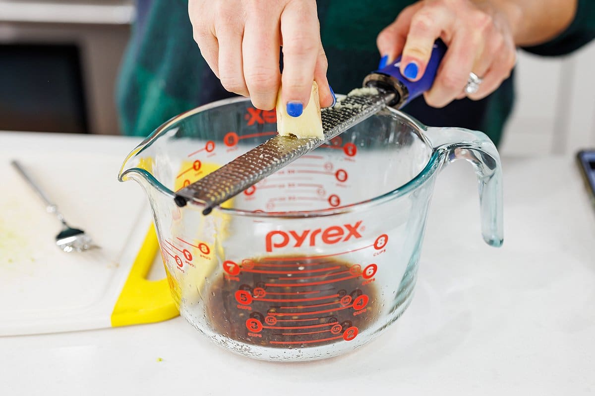Step 5. Then use a microplane to grate fresh ginger into the vinaigrette.