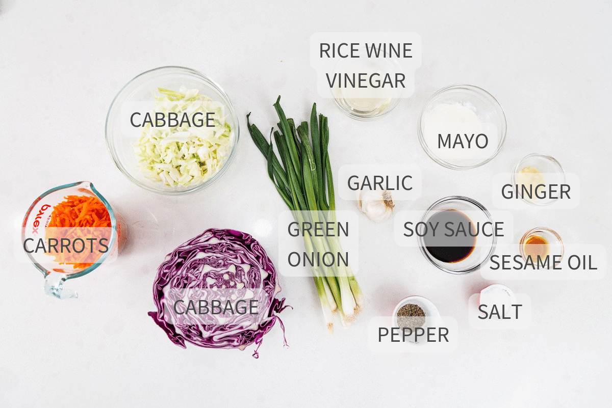 - Cabbage: You can grab a bag of pre-chopped cabbage, or just shred your own mix of purple and green cabbage.