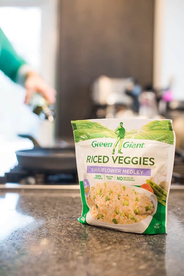 For this particular recipe, I decided to use the cauliflower medley since it has peas which my boys love. That said, any variety of Riced Veggies works!