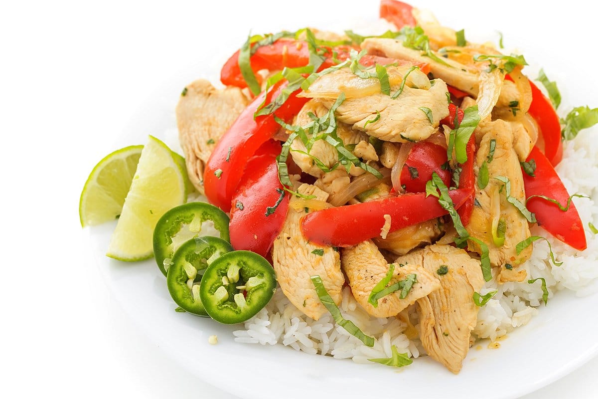 This 15-minute Thai Basil Chicken stir-fry recipe is made with fragrant basil, tender chicken breast, and red bell peppers.