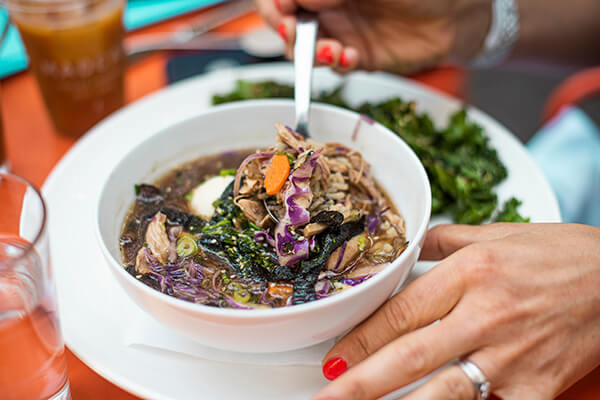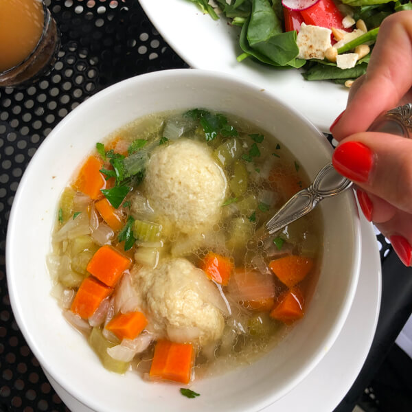 In classic Liz fashion, I always tend to go more savory for breakfast which is why I was thrilled to discover matzo ball soup and fattoush salad on their all day menu. My friend loved the avocado toast as well!