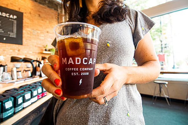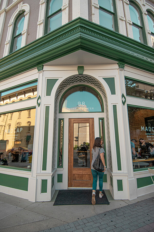 Once you’ve checked in, walk two blocks to one of my favorite local coffee shops: Madcap Coffee Company.