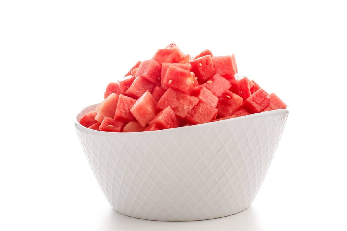 Rotate the rounds 90 degrees, and cut into strips again, creating perfect watermelon cubes.
