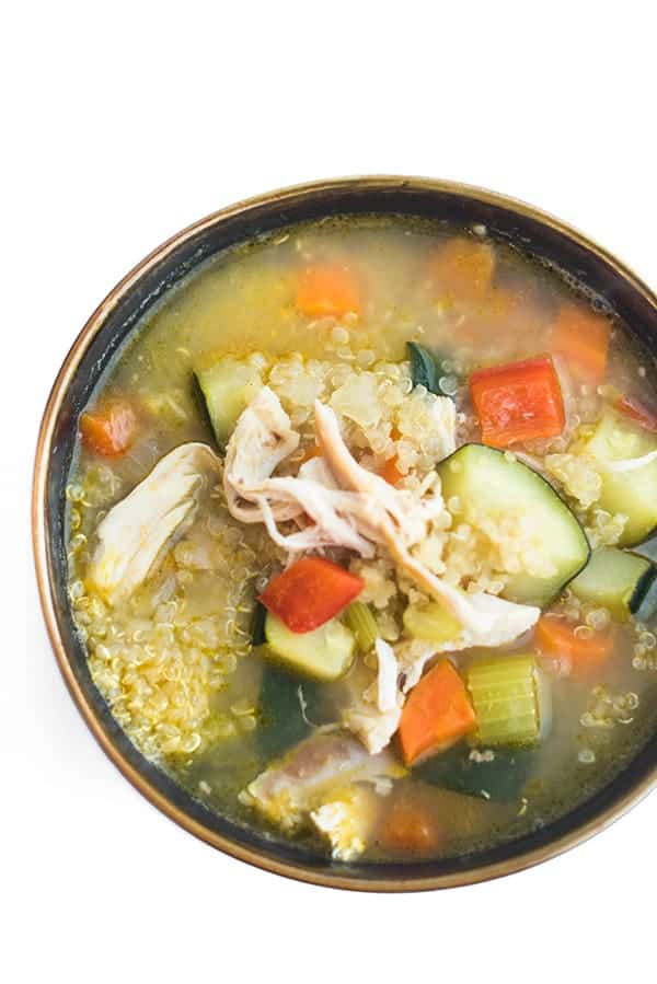 This warm and comforting soup is loaded with hearty vegetables and quinoa. Ideal for using up leftover turkey or rotisserie chicken.