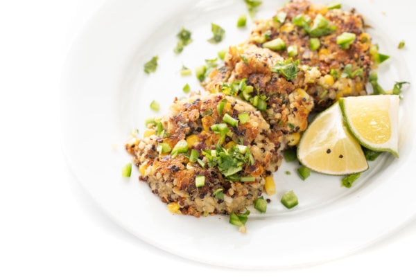 Made with hearty quinoa, sweet corn, spicy jalapeño, creamy hummus and a bit of lime zest, these quinoa fritters are guaranteed to be a crowd pleaser.