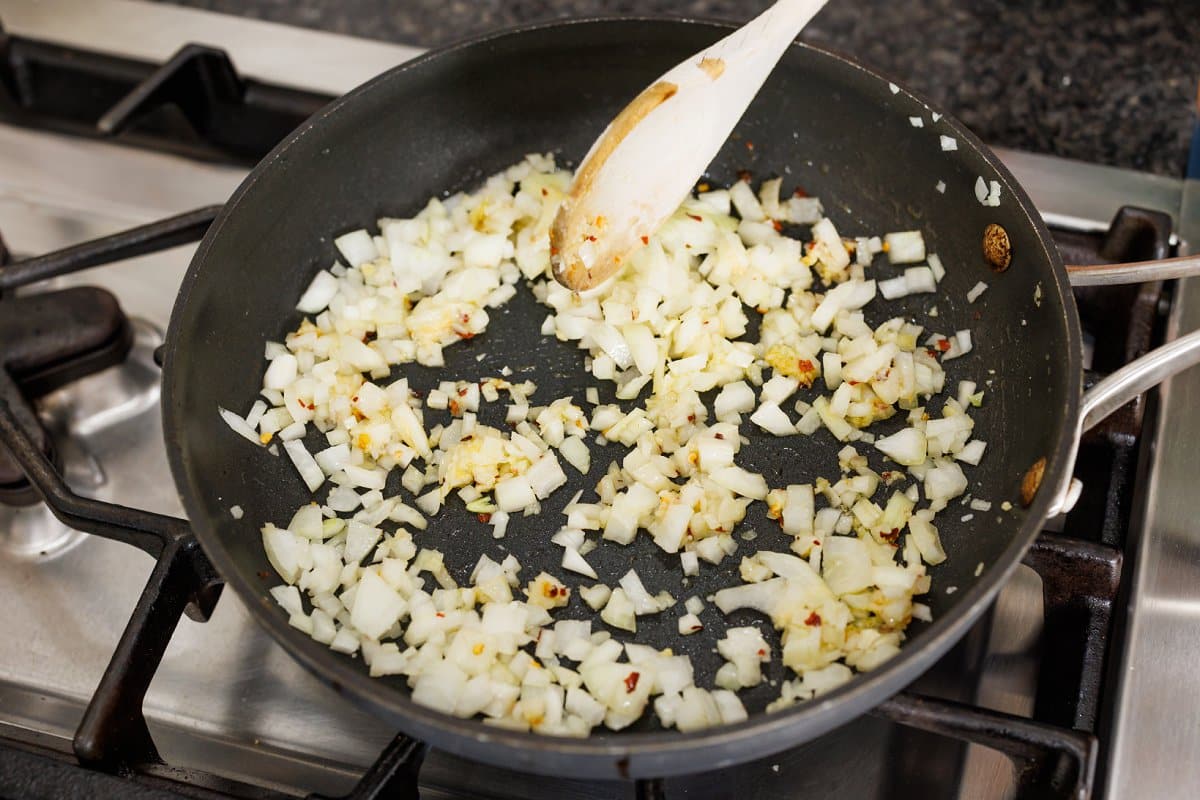 Sauté until onion has started to soften.