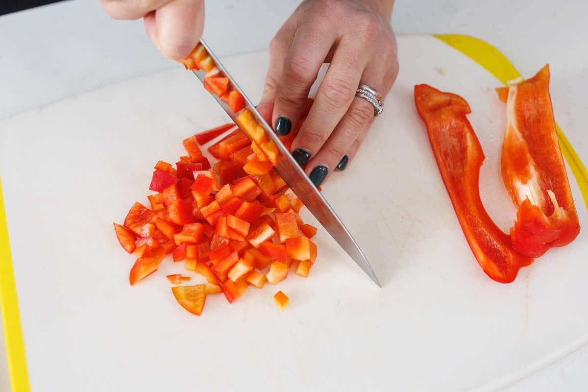 - Red bell pepper: The sweetest of the bell peppers, the red pepper pairs well with the onion and potatoes.