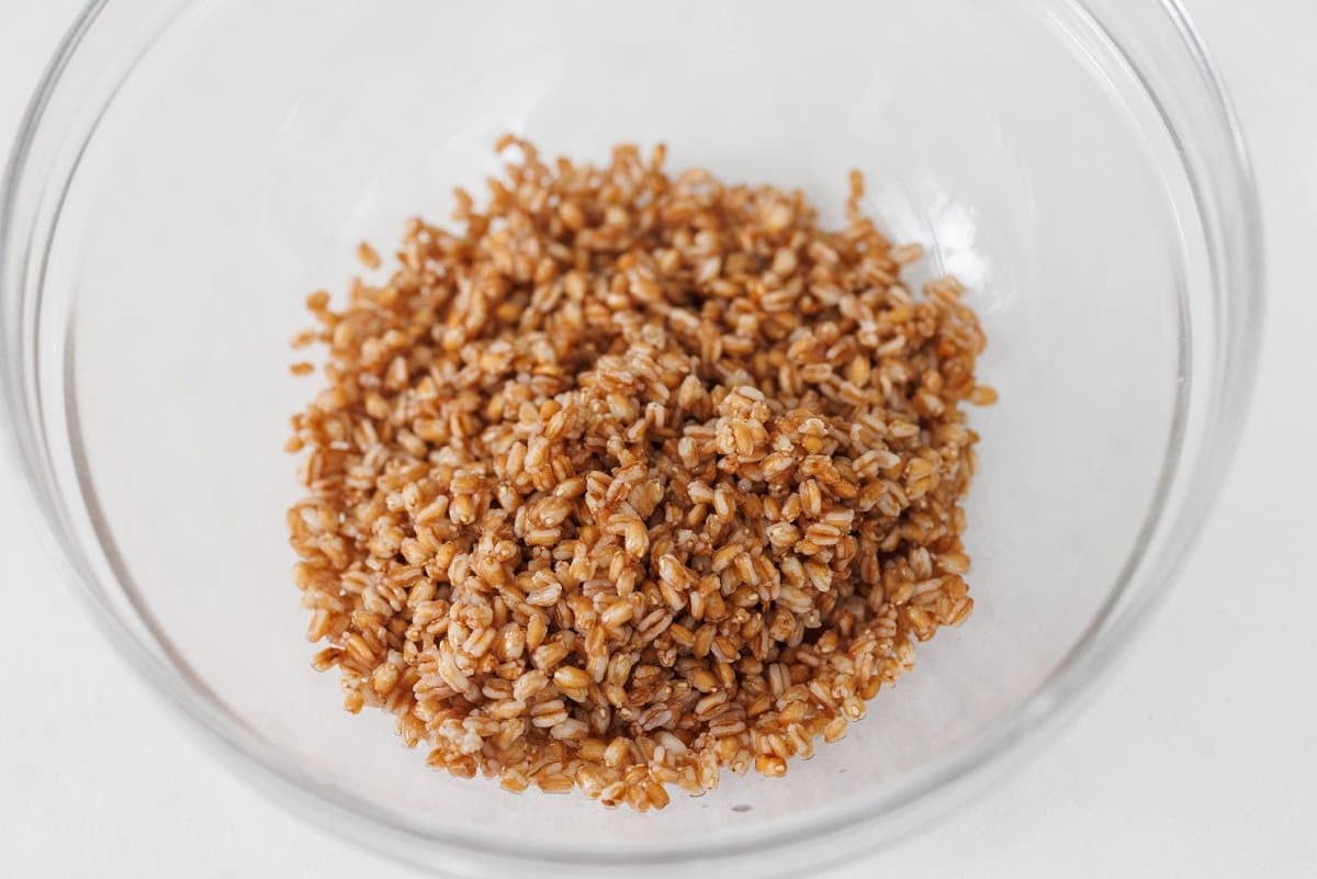 Then in a large bowl, add your cooked wheat berries.