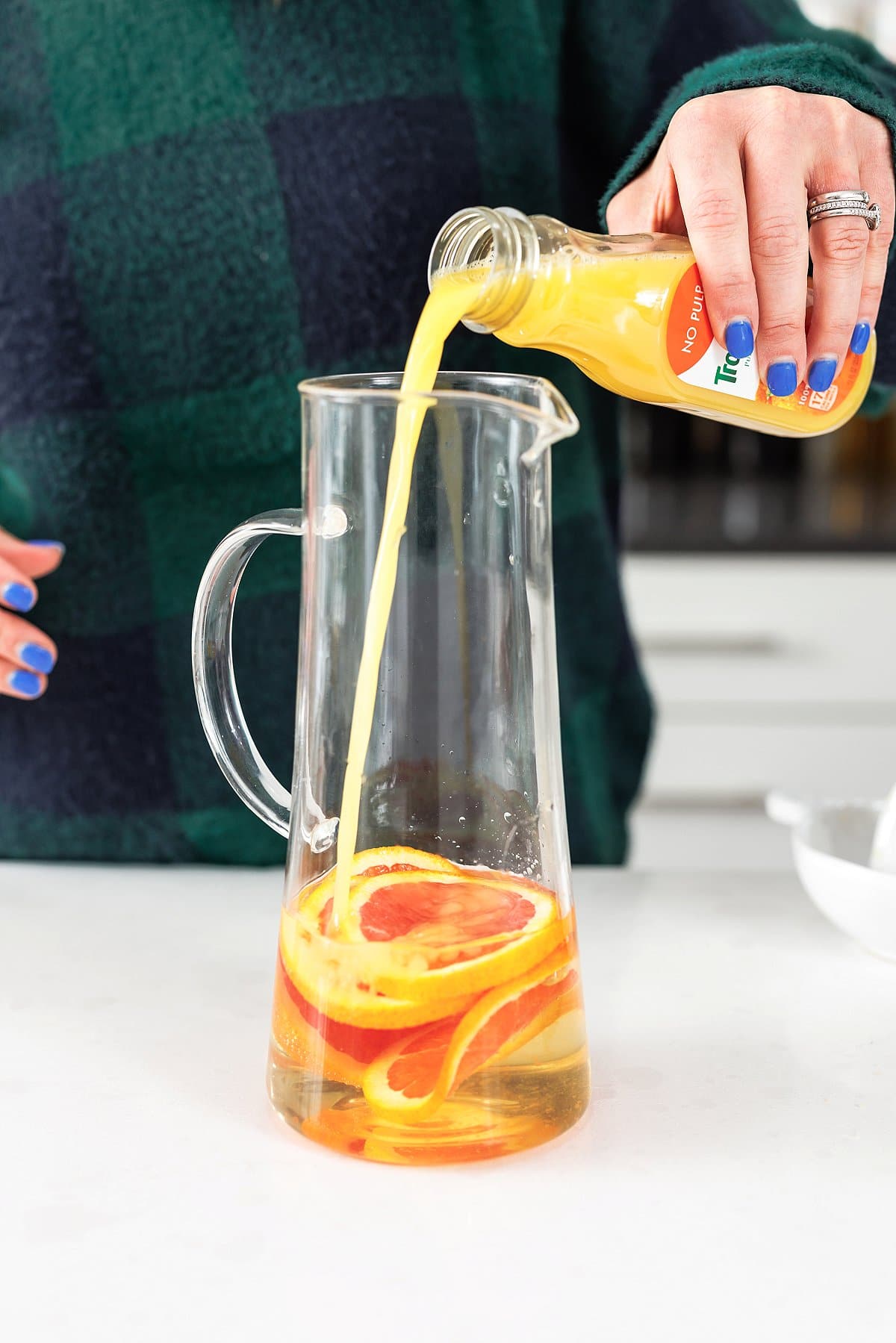 Then add in your fresh or store-bought orange juice.