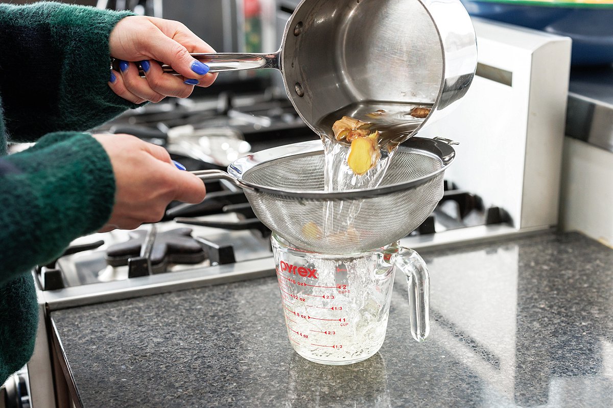 Follow it with the ginger simple syrup that you made, now cooled entirely.