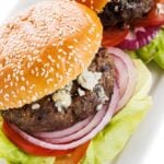 Perfect for grilling season or any time of year under the broiler, these delicious blue cheese stuffed burgers are made with juicy beef and stuffed with creamy blue cheese. This easy recipe is a must-try for burger lovers!