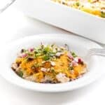 A fun spin on the traditional Italian dish, this naturally gluten free cheesy Mexican lasagna recipe is made with shredded chicken, black beans and corn.