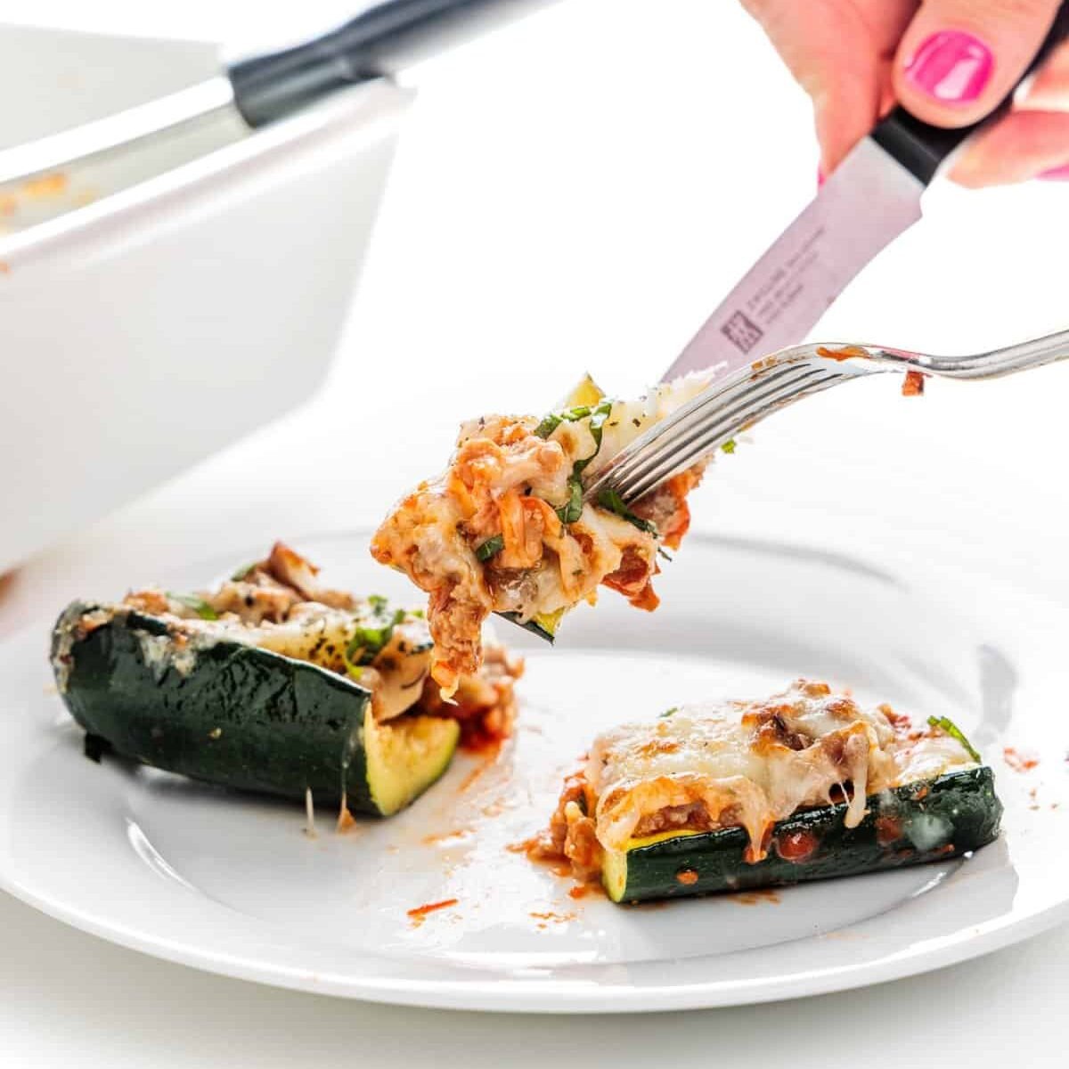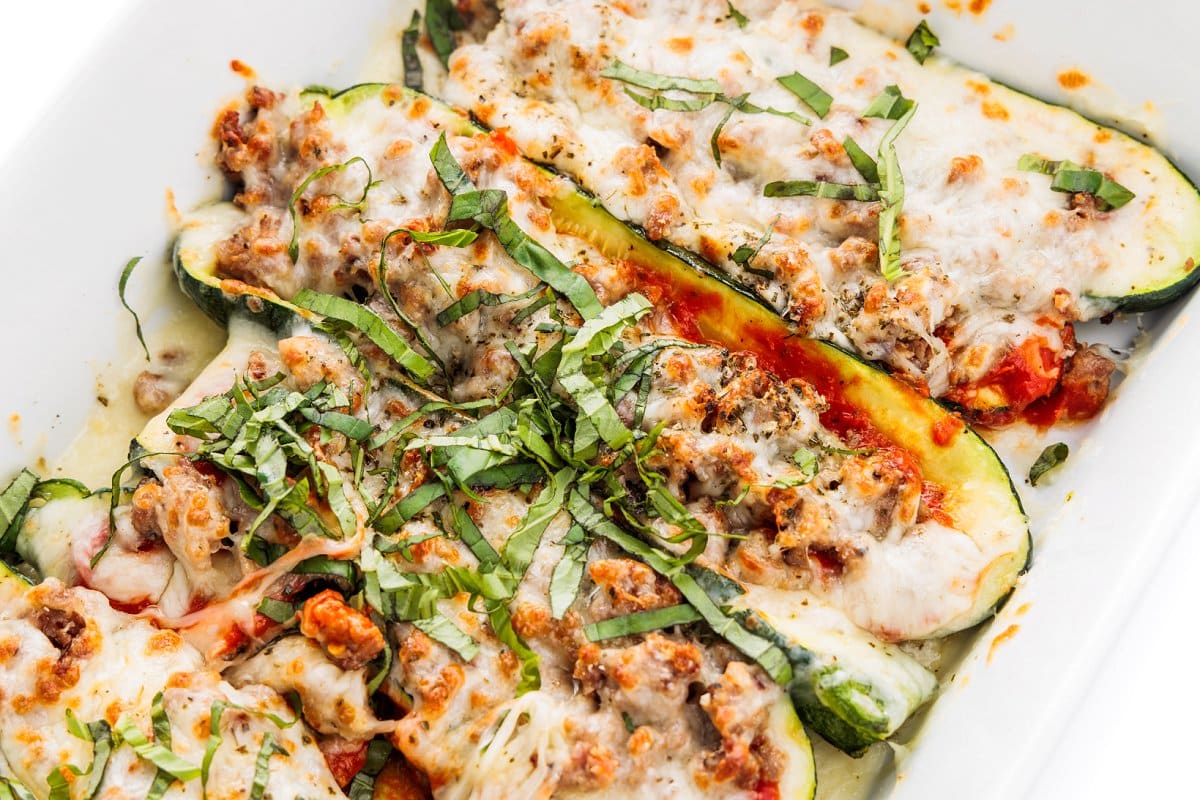 A low carb pizza alternative, these zucchini pizza boats will be a huge hit with the whole family. Stuffed with hearty Italian sausage, veggies, and two types of cheese, this quick and easy dinner recipe is sure to be a new favorite.